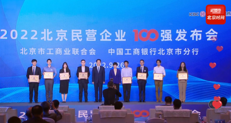 2022年9月26日,由北京市工商业联合会与中国工商银行北京市分行共同举办的“2022北京民营企业百强发布会”在北京经济技术开发区举行。北京民营企业百强调研报告、北京民营企业“1+4”百强榜单在现场发布。